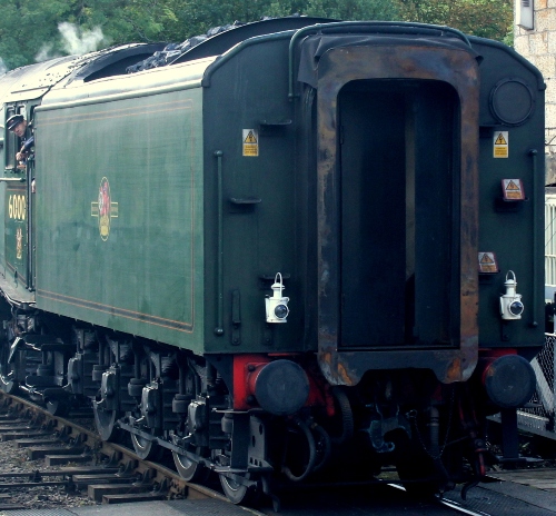 This tender was originally built to run with LNER W1 class 4-6-4 no 10000. Not known if the tank has been replaced since preservation. The internal water scoop pipe has been removed increasing water capacity by an estimated 75 gallons. Loco and tender displayed at purpose built museum at Balbuthie Farm, Kilconquhar, Fife. |