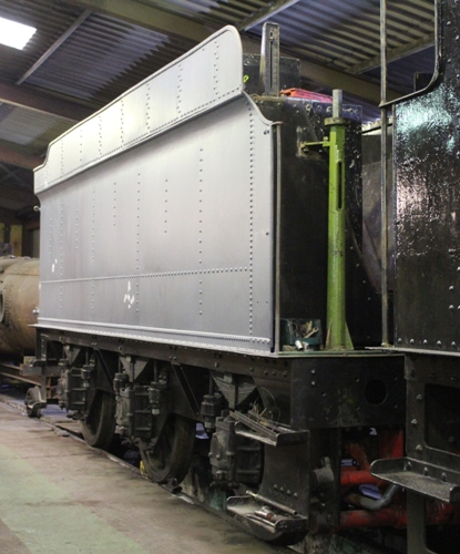 The original number of this tender is unknown and the owner has given it the next tender number that would have been used for a Collett 4000 gallon tender with riveted tank if any more had been built. This tender was purchased from departmental use by, it is thought, the group who owned SR West Country class no. 34007 and was later resold to the owner of GWR 2884 class 2-8-0 no.3814. The owner has two tenders for 3814. The other tender is a Churchward 3500 gallon tender. Restoration included new tank baffles, tank top around the filler, rear of the coal space and most of the right hand tank side. Restoration is complete though it is still awaiting final painting in September 20232. It was initially be used with new build GWR Grange class 4-6-0 no. 6880 when this loco was completed. However an announcement on the Facebook page 'Restoration of Gwr3814' on 1/12/2023 said this agreement had been cancelled. |