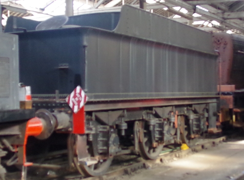 The actual identity of this tender has not been established but it arrived at Woodham Bros, Barry with GWR 28XX class 4-6-0 no. 2873. The last tender on this loco's record card is no. 2235 but the loco ran for another 2 years when no information was added to the record card and it could have been swapped for another one during this time. Tank and chassis separated by 2010. New tank fitted in 2013.The tender is now complete but restoration of the loco continues. |