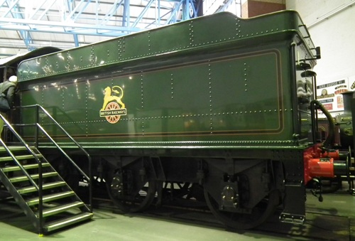 Not known if tank has been replaced since preservation. The true identity of this tender has not been confirmed at present but it is almost certainly not number 2389. According to information in the 1931 GWR Tender Register (RAIL 254/340) 2389 was the tender that travelled with locomotive 6000 to the Baltimore & Ohio Rly in 1927. The WR Condemned Locos, Boilers & Tenders book for 1962-1964 (Rail 254/158) has it withdrawn from use in October 1963 having last been used with GWR Modified Hall class 4-6-0 no. 7922 and a note in the same document indicates the intention to be put with loco 6000. However photos of tender 2389 shortly before withdrawal show it has early style Collett frames not the late style fitted to the current tender. A small plate attached to the front of the frames of the current tender states 'experiment No. W/SW/L/96 tender No. 2873 hexagon headed spring hangers and rocking washers'. 2873 was built with late Collett frames and this may well represent the true identity of the tender. |