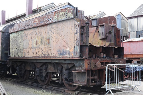 Tank has not been replaced since preservation. The identity of this tender is unclear. Several tenders were purchased by the Great Western Society in the 1970s and the identity of two of these appears to have become confused. In February 1974 the tender from GWR Modified Hall no. 7903 was moved to Didcot with GWR Hall no 4942. In May 1976 the tender from GWR Hall no. 5967 was moved to Didcot with GWR Castle no. 5029. The tender that left with no.4942 had very distinctive rust holes on the right hand side of the coal fender. Based on these holes, multiple subsequent photos show that this tender remained stored with 4942 for many years until conversion of this loco started to Saint no. 2999. No pictures of the tender of 5967 at Barry or coupled with 5029 when removed from Barry have been found. Subsequently one of these tenders was dismantled with the inner frames being used for a new build Hawksworth 4000 gallon 8ft 6in wide tender. The Great Western Society in an article in Great Western Echo no. 213 Spring 2016 identified the dismantled tender as the one from GWR Hall no. 7903 that arrived at Didcot with GWR Hall no. 4942. However the existing intact tender has the distinctive rust holes seen in the fender of the tender that came from Hall 7903 and it is most likely that the Great Western Society has confused the identities of the two tenders at some stage. Any pictures of the tender of 5967 at Barry or with 5029 at Didcot may help solve this mystery. At present, as the Great Western Society refer to this tender as number 2885, the Tender Register will continue to use this number for this tender. |