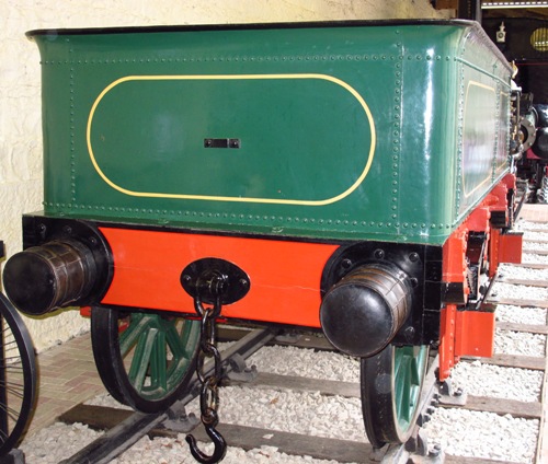 Water and coal capacities are estimated based on dimensions on the tank and coal space. The loco and tender were withdrawn from service in the 1880's and aoart from painting the tender is believed to be unchanged since then. |