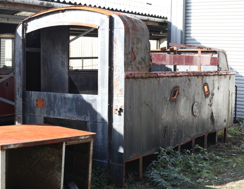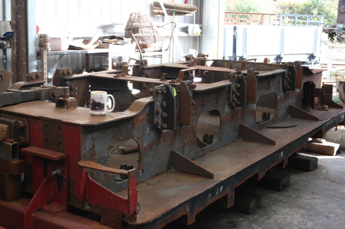 Built for 2'6' gauge. Imported to the UK in 2006. The original tank has been removed and has been replaced with a new design, the original frames were kept. The tender was Harbin Forest and Machinery works number 221. The top picture shows the frames upside down still attached to the floor of the tank. |
