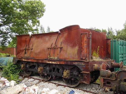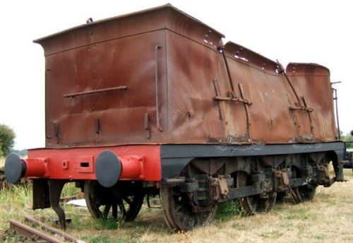 Purchased by the GCR 567 Locomotive Group in 2011 from the previous owner who had bought it for preservation about 20 years previously. Built originally for the Railway Operating Department (ROD) during World War One for use with their standard 2-8-0 based on the GCR Robinson 8K class. Later passed to the LMS (either directly from the War Department or via the LNWR) who converted it to a sludge carrier. It will be rebuilt with a 3080 gallon shaped tank to run with the new build GCR class 2 (LNER class D7) 4-4-0 that is being planned at present. It is highly likely that this tender was never fitted with a water scoop. |