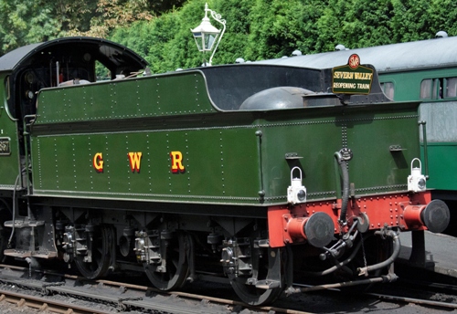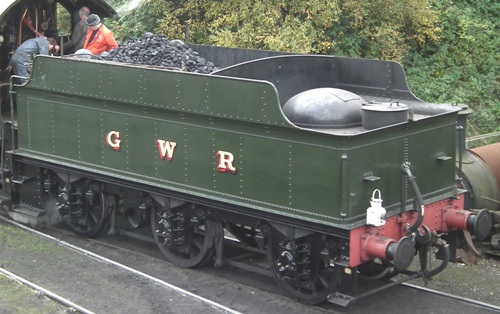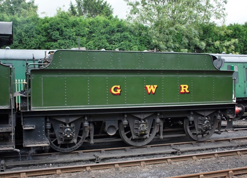 Tank is welded internally but external joints are riveted. The tank was built by D G Welding of Gloucester. Tender normally runs with 2857 GWR 28xx 2-8-0 but is currently in use with 7802 GWR Manor class 4-6-0 |