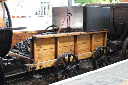 Coupled to the original locomotive. The original tender when first built is thought to have had a wheelbase of 4'3', larger diameter wheels and a barrel for water storage. The loco served as a stationary boiler for a pump from 1846 until restoration in 1856. It is therefore possible that the current tender is a replica from this time though its design may reflect the final appearance of Locomotion's tender when it was in service. |