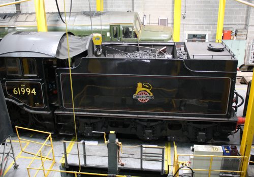 Water capacity increased by fitting an additional tank behind coal space in March/April 2010. Not known if tank has been replaced since preservation. When originally restored c1962 the number plate fitted carried the number 3442 (the LNER number of 61994). This plate had been removed by 1973 and subsequently a plate with the correct number, 7570, has been fitted. Locomotive and tender displayed at a purpose built museum at Balbuthie Farm, Kilconquhar, Fife. |